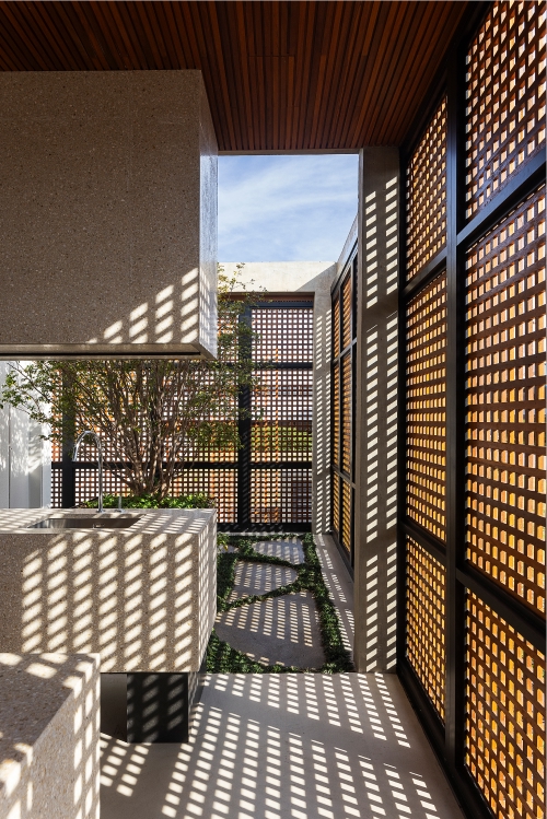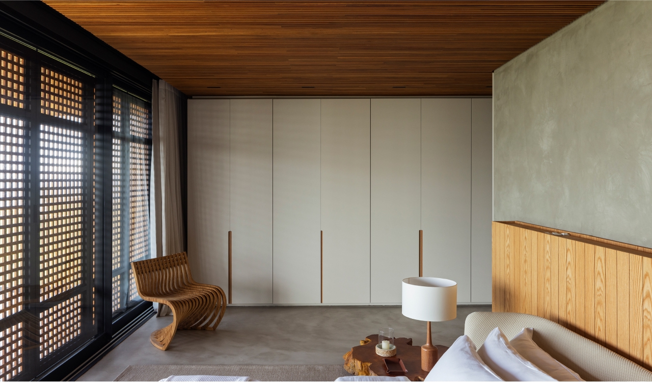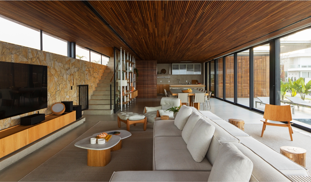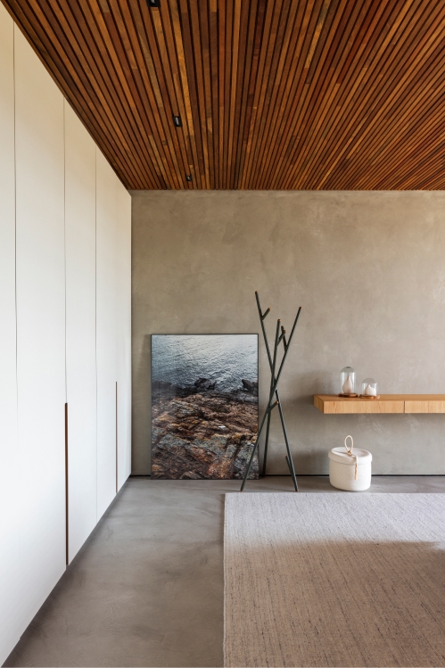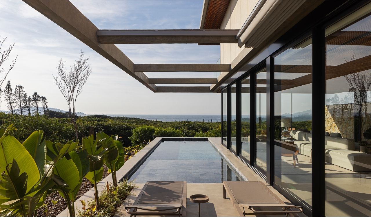 O ambiente natural determinou o projeto da casa. A contemplação do mar, logo em frente, e a conexão com a paisagem do entorno foram premissas estabelecidas como ponto de partida. O programa foi distribuído em três pavimentos, incluindo espaços de bem-estar e de convivência integrados a uma ampla área externa. Com vista para a praia, a varanda frontal foi projetada para ser usada durante todo o ano. O conceito de casa de praia orientou a ambientação, com enfoque no minimalismo, em materiais naturais, no conforto e na funcionalidade.