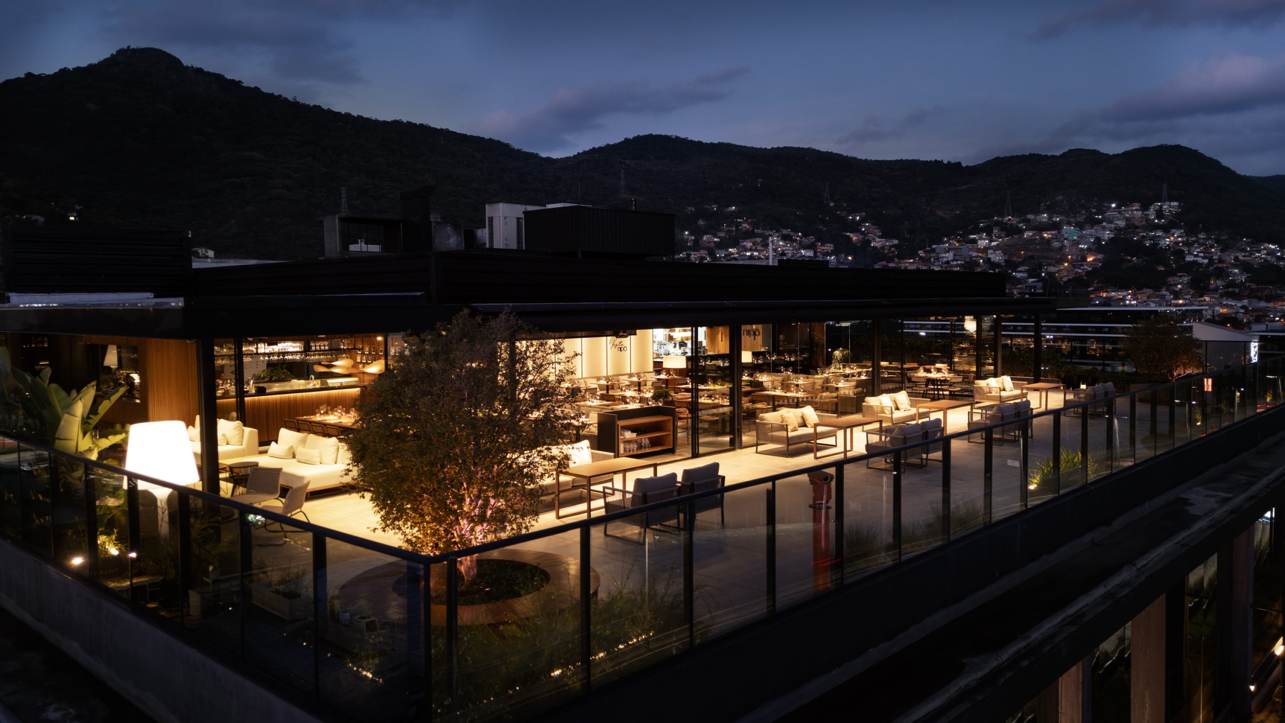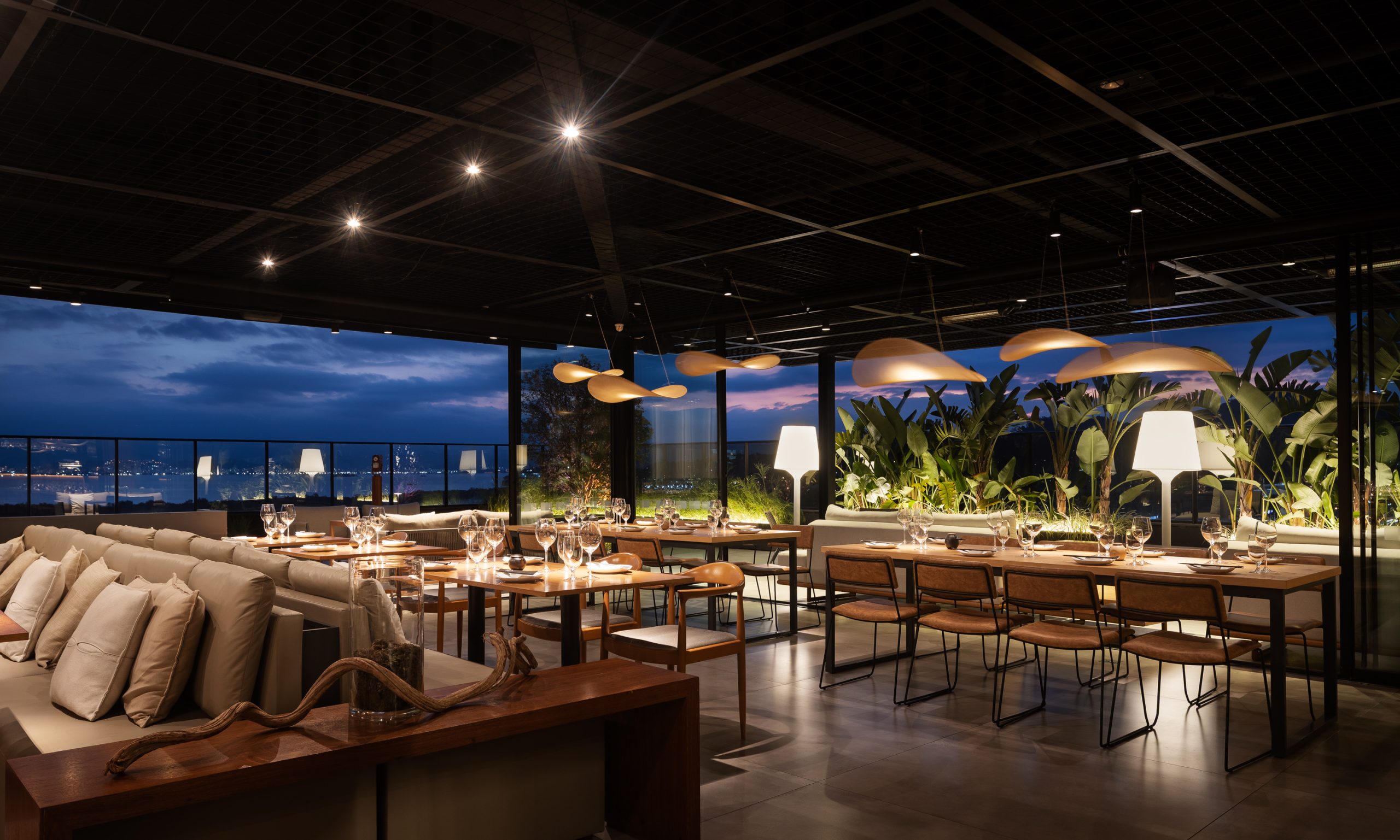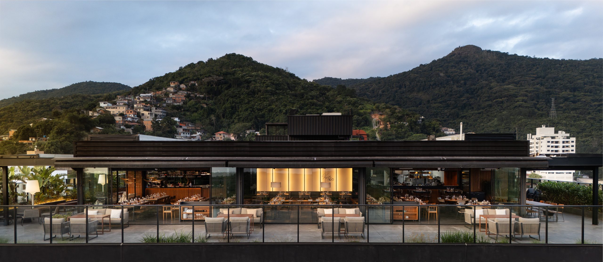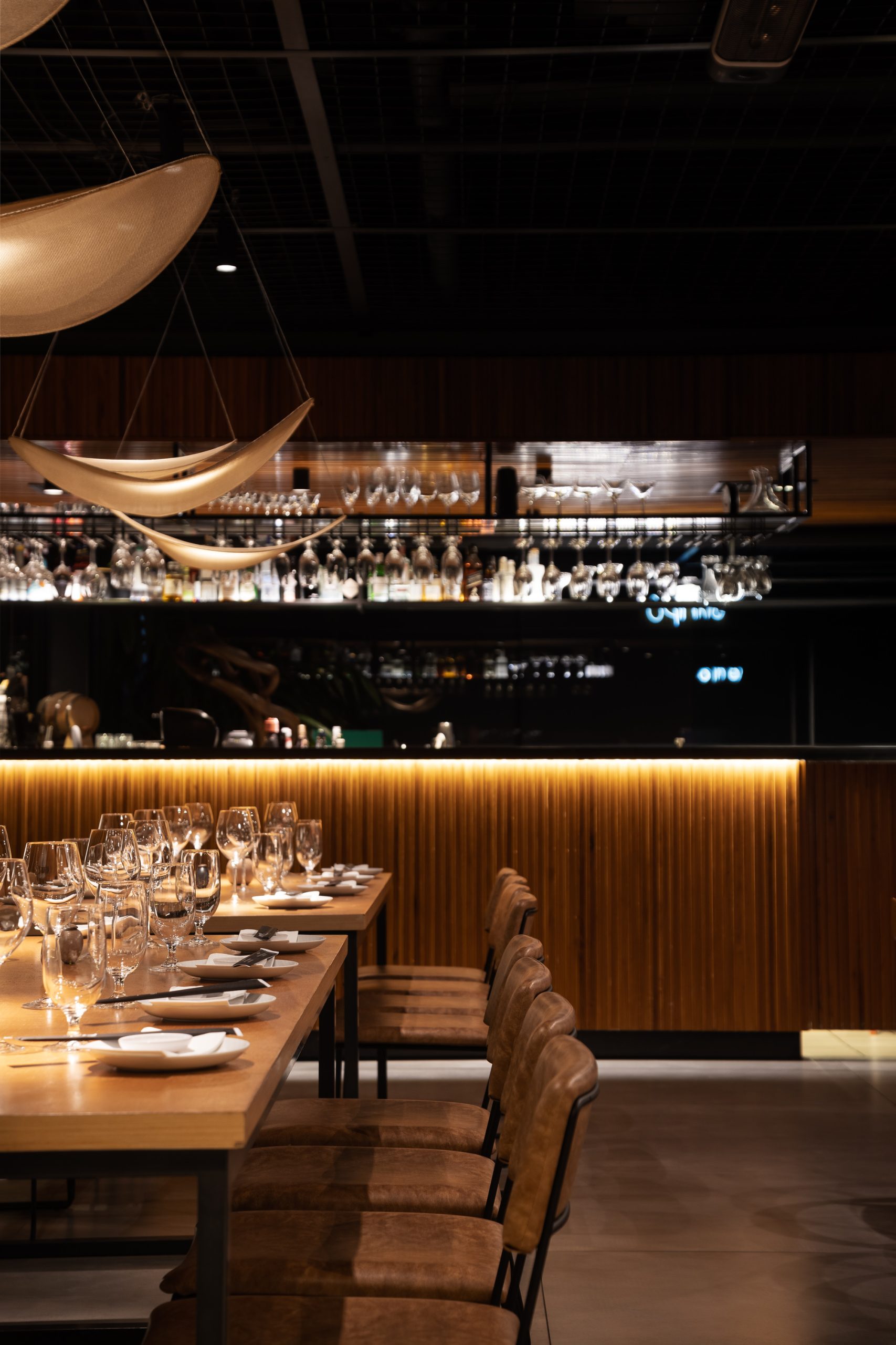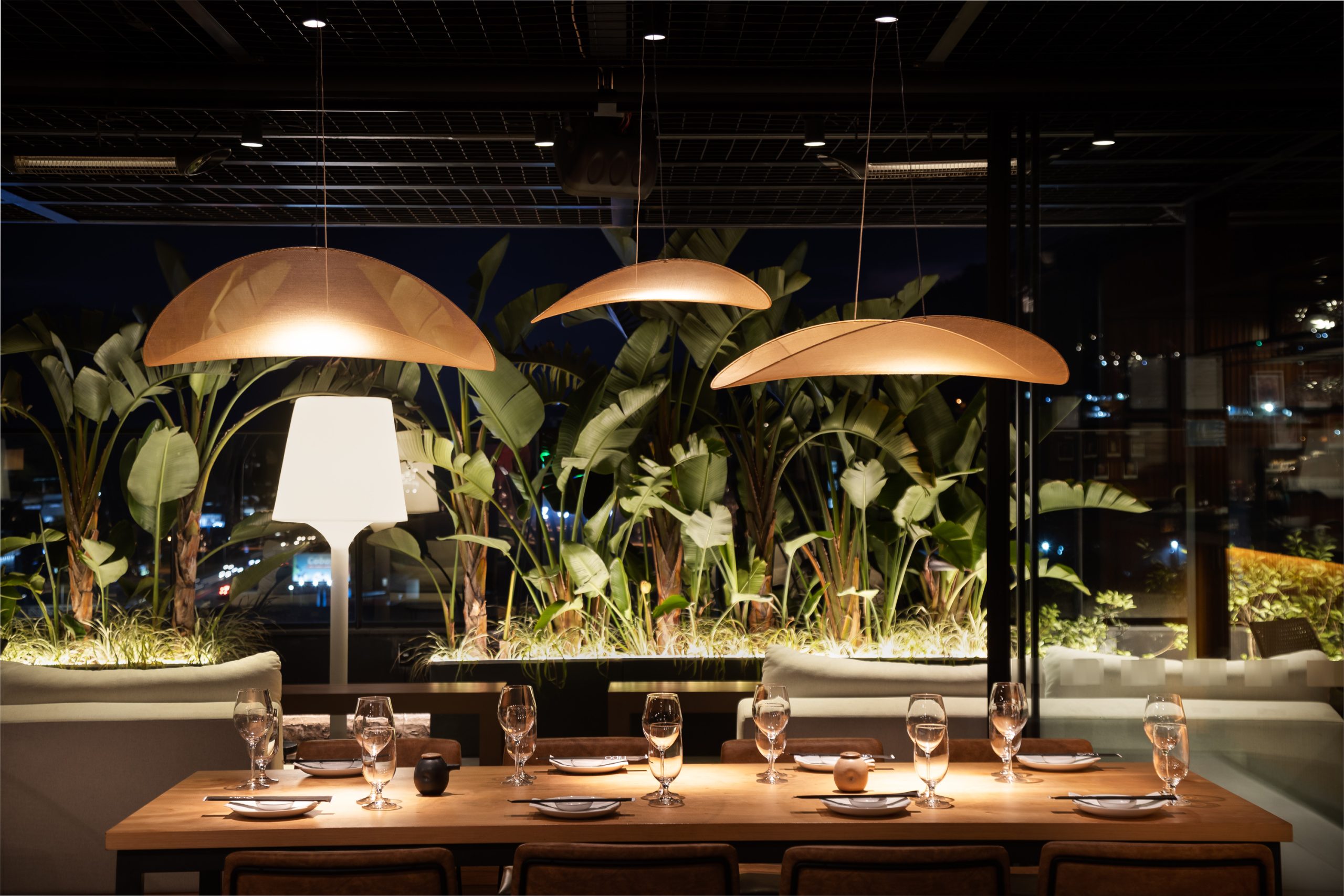 Inspirado na estética oriental e inserido no edifício Primavera Office, projetado pela Ark7, o restaurante foi concebido com foco na integração e na valorização da paisagem. Implantado em uma nave única, o espaço reúne diferentes configurações de mesas que permitem múltiplas possibilidades de ocupação e convivência. O rooftop amplia a experiência, oferecendo ao visitante uma vista panorâmica que caracteriza o local. A organização funcional distribui o bar e a recepção de um lado, e a cozinha com o sushibar no lado oposto, garantindo fluidez e eficiência. Materiais em tons neutros e iluminação intimista reforçam a atmosfera acolhedora e contemporânea do projeto.
